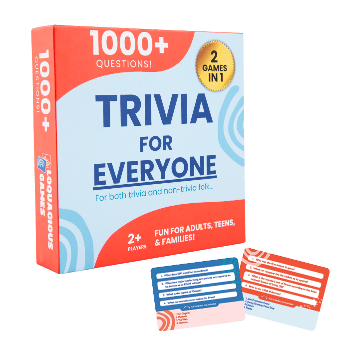Discover Trivia for Everyone: our flagship game with 1000+ questions! Fun for adults, teens, and families. Perfect for game nights, road trips, and parties. And it’s a great gift!
